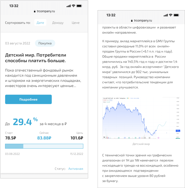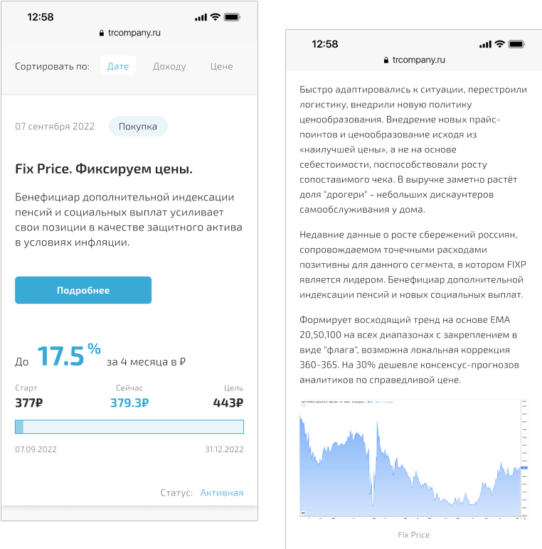 Объясняем, какие акции сейчас интересны к покупке и почему, указываем, по какой цене и на каком горизонте мы собираемся выходить из идеи. Идеи регулярно обновляются по мере выхода отчетности компаний или появления важных событий.